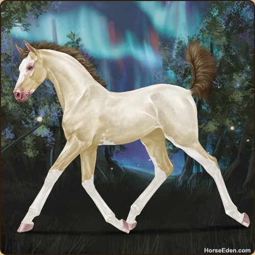 Color: Amber Champagne Roan Sabino