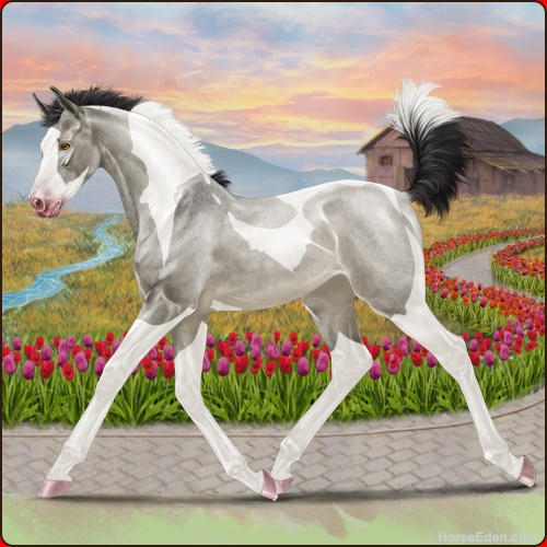 Color: Roan Grullo Tobiano Splash White