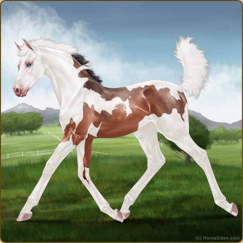Color: Blood Bay Dun Tobiano Splash White