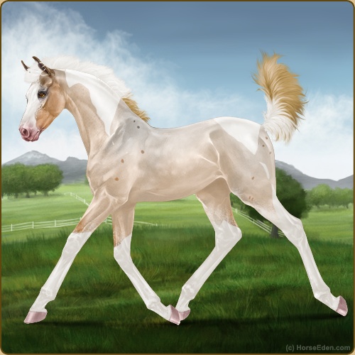 Color: Flaxen Red Roan Dun Tobiano Sabino