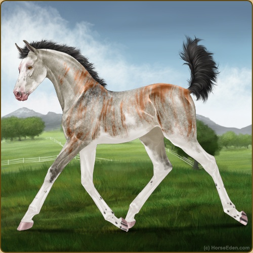 Color: Grey Sabino BrindleHorse Nbr: 44137246Breed: Appendix Quarter HorseSex: ColtBirthdate: April 5, 2026Age: 1Birth Year: 201Straws Drawn: 0Height: 10.1 Hands