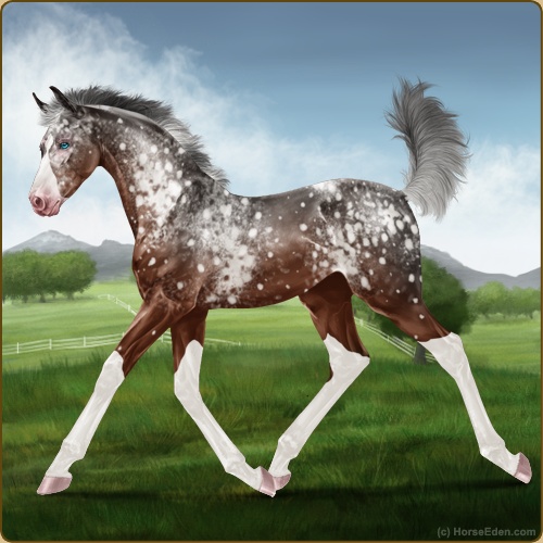 Color: Mahogany Bay Splash White Varnish Snowflake Appaloosa