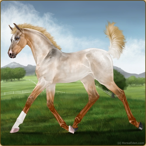 Color: Flaxen Red Roan Dun Rabicano