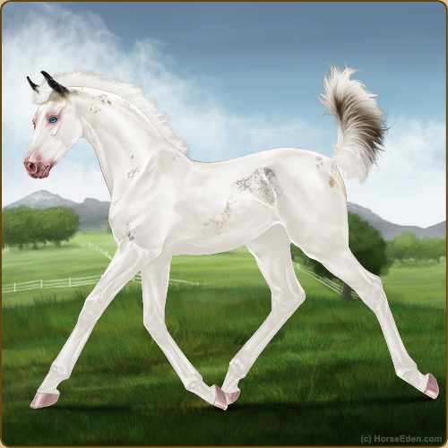 Color: Amber Champagne Tobiano Splash White Sabino Rabicano