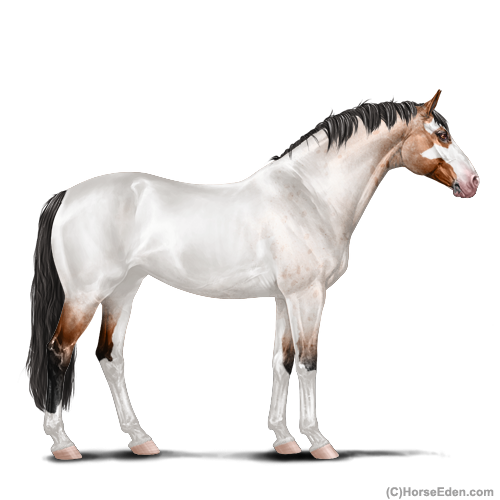 Color: Light Bay Roan Frame Varnish Snowcap Appaloosa