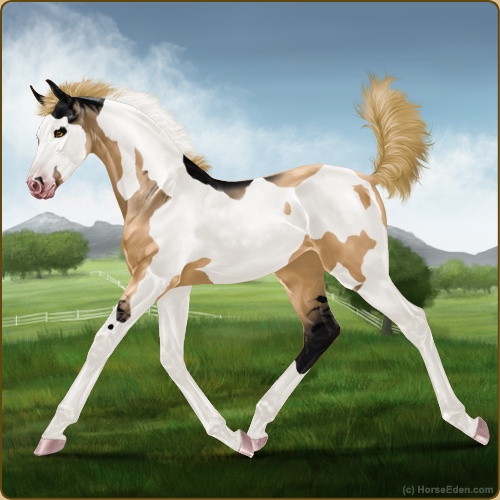 Color: Flaxen Red Dun Tobiano Frame