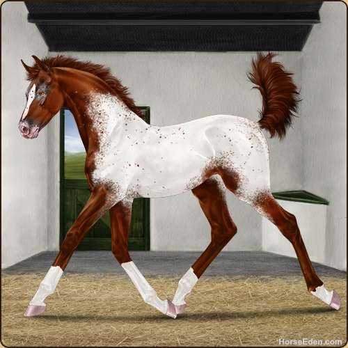 Color: Chestnut Varnish Near Fewspot Appaloosa