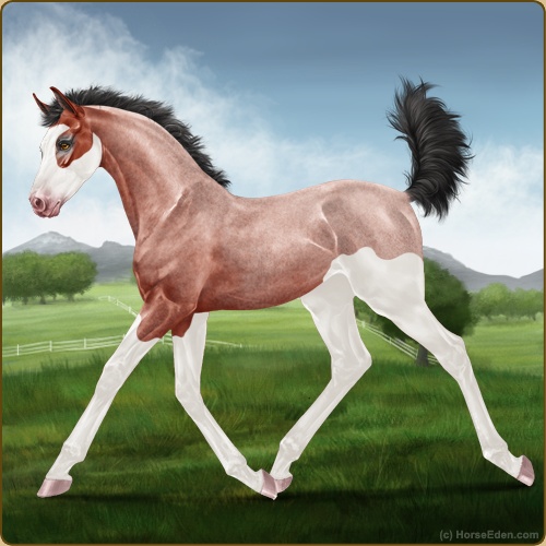 Color: Blood Bay Roan Splash White