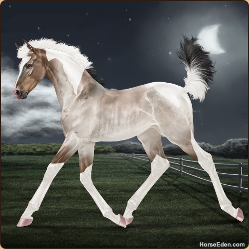 Color: Brown Roan Dun Tobiano Rabicano