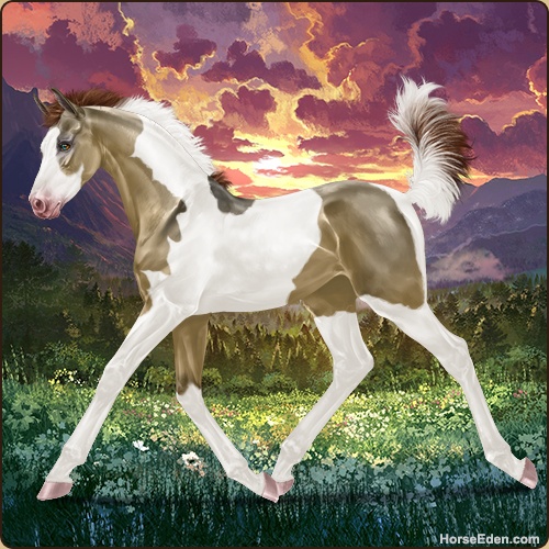 Color: Dark Red Dun Tobiano Splash White Sabino