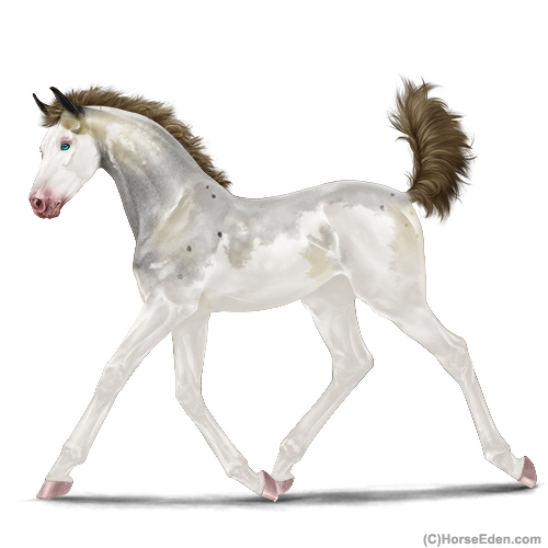Color: Amber Champagne Roan Splash White Sabino Frame