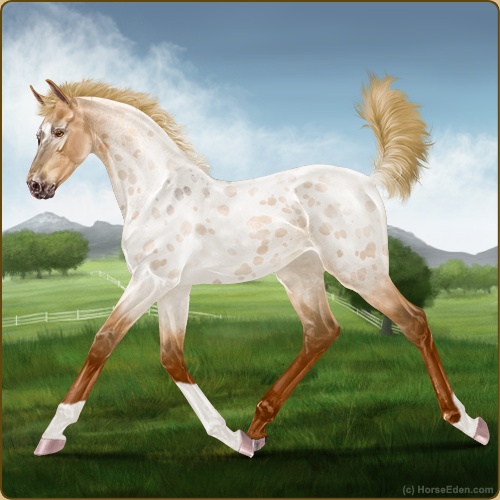 Color: Flaxen Red Roan Dun Near Leopard Appaloosa