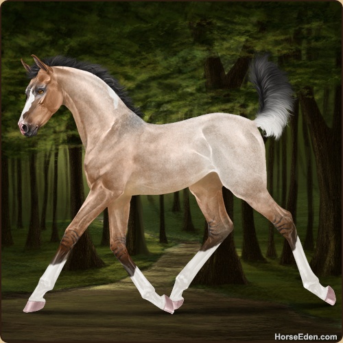 Color: Light Bay Roan Dun Tobiano Rabicano