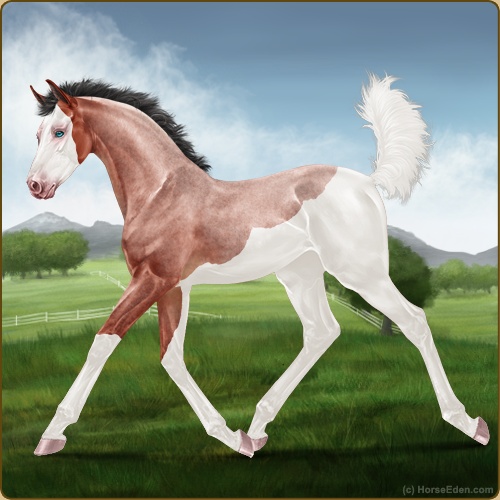 Color: Blood Bay Roan Splash White