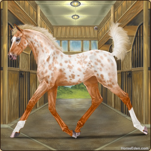 Color: Flaxen Red Roan Varnish Near Leopard Appaloosa