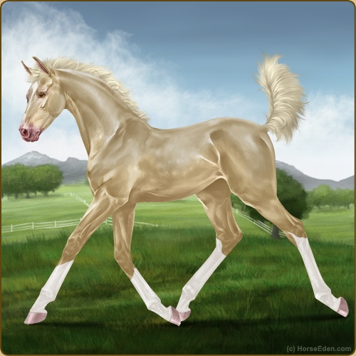 Color: Gold Creme Splash WhiteHorse Nbr: 44172272Breed: Irish Sport HorseSex: FillyBirthdate: April 9, 2026Age: 1Birth Year: 201Height: 10.0 Hands