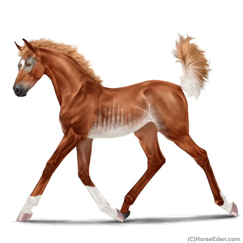 Color: Chestnut RabicanoHorse Nbr: 44181180Breed: Sport HorseSex: FillyBirthdate: April 11, 2026Age: 1Birth Year: 201Height: 10 Hands