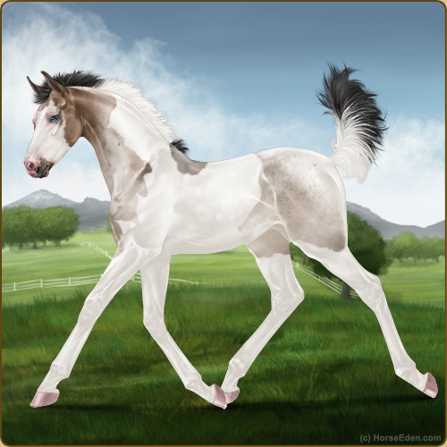 Color: Brown Roan Dun Tobiano Splash White