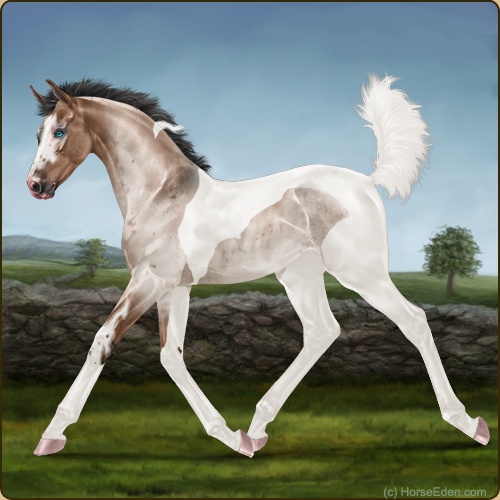 Color: Mahogany Bay Roan Dun Tobiano Splash White