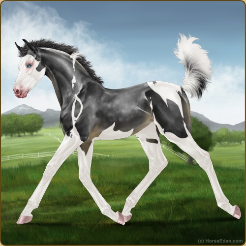 Color: Smokey Black Tobiano Splash White Sabino