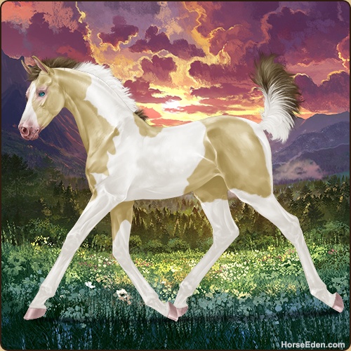 Color: Amber Champagne Tobiano Splash White