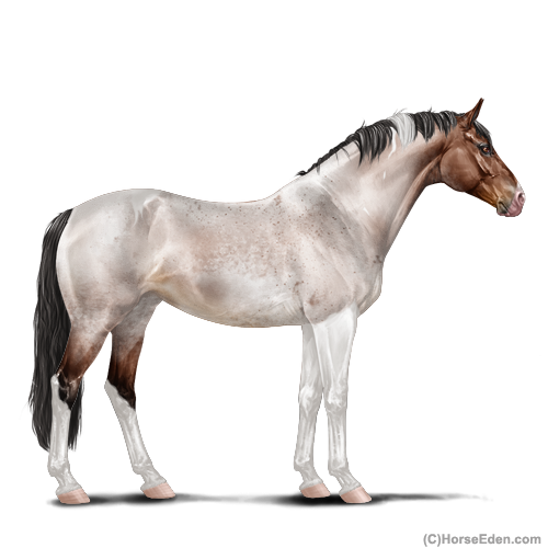 Color: Mahogany Bay Roan Tobiano Splash White
