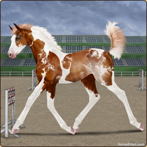 Color: Flaxen Chestnut Tobiano Splash White Sabino Rabicano