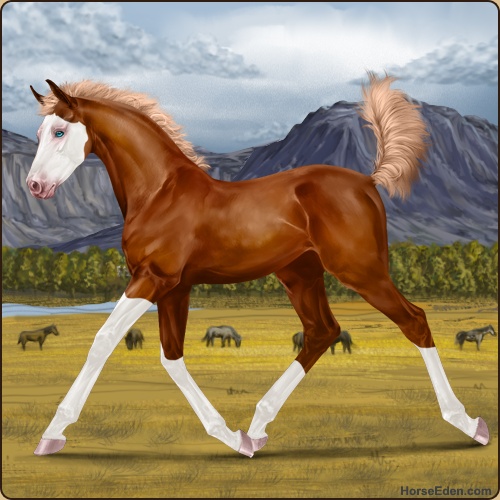 Color: Flaxen Chestnut Splash WhiteHorse Nbr: 44340539Breed: Irish Sport HorseSex: FillyBirthdate: April 22, 2026Age: 1Birth Year: 201Height: 10.0 Hands