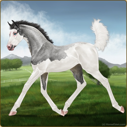 Color: Smokey Blue Roan Splash White Varnish Appaloosa