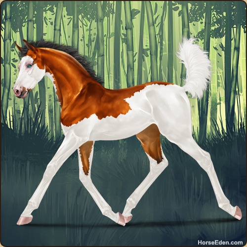 Color: Copper Bay Splash White Rabicano