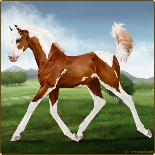 Color: Flaxen Chestnut Tobiano Splash White Sabino