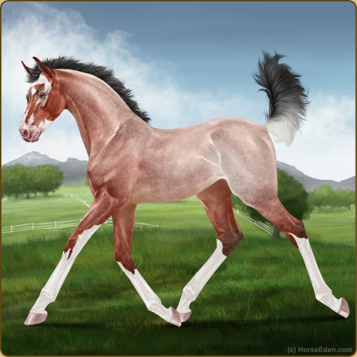 Color: Blood Bay Roan Splash White Sabino Rabicano