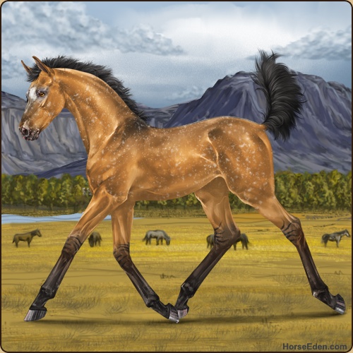 Color: Golden Bay Dun Varnish Snowflake Appaloosa