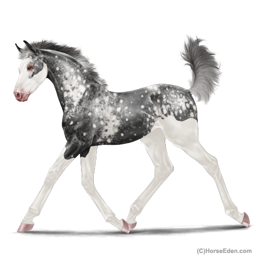 Color: Smokey Black Splash White Sabino Snowflake AppaloosaHorse Nbr: 44347482Breed: Sport HorseSex: FillyBirthdate: April 23, 2026Age: 1Birth Year: 201Height: 10 Hands