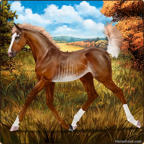 Color: Flaxen Chestnut RabicanoHorse Nbr: 44348635Breed: WarmbloodSex: FillyBirthdate: April 23, 2026Age: 1Birth Year: 201Height: 10.0 Hands