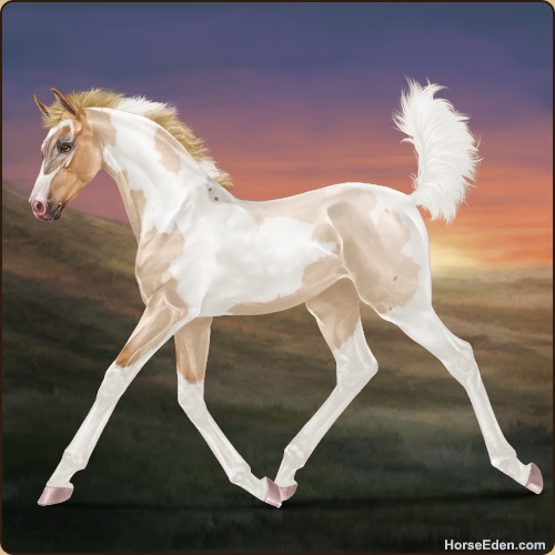 Color: Flaxen Red Roan Dun Tobiano