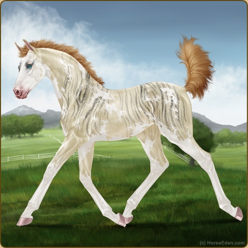Color: Buckskin Pearl Tobiano Sabino Brindle