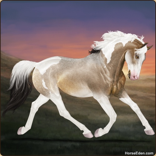 Color: Brown Roan Dun Tobiano Sabino