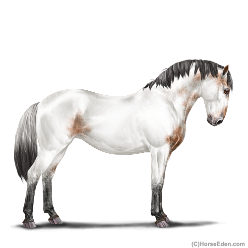 Color: Bay Roan Fewspot Appaloosa
