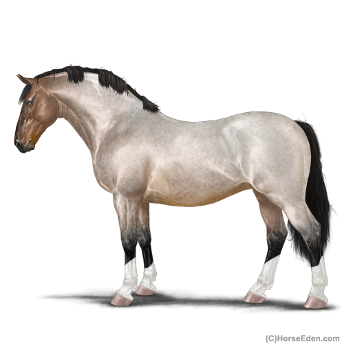 Color: Bay Roan Dun Tobiano