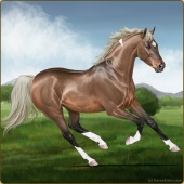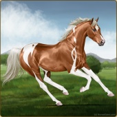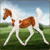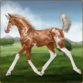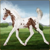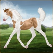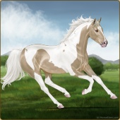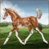 Name: Silve X Deser 200Age: 2 Stallion Color: Palomino Pearl Sabino Breed: Thoroughbred Foal Rating: E/W/E |  |