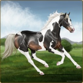 Name: Silve X AaZzT 199Age: 3 Mare Color: Silver Black Tobiano Sabino Breed: Thoroughbred Foal Rating: E/E/E |  |