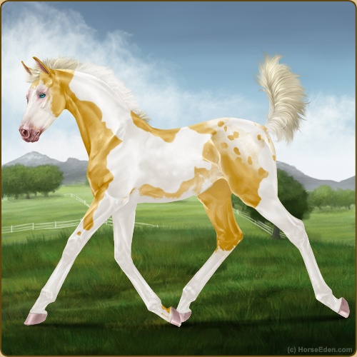 Color: Gold Champagne Tobiano Splash White Rabicano Blanket AppaloosaHorse Nbr: 43000171Breed: Sport HorseSex: GeldingBirthdate: December 20, 2025Age: 1Birth Year: 197Height: 10 Hands