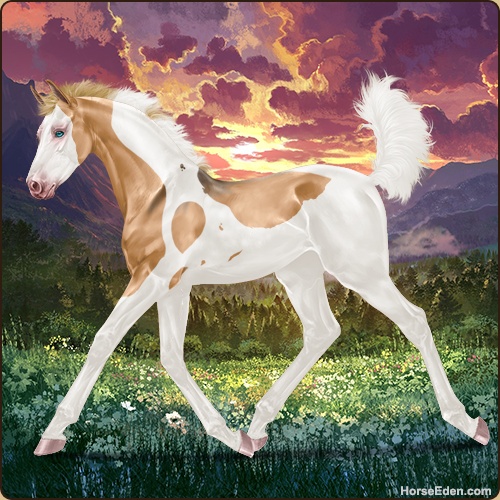 Color: Flaxen Red Dun Tobiano Splash White