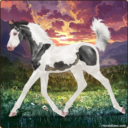 Color: Black Tobiano Splash WhiteHorse Nbr: 43038073Breed: WarmbloodSex: FillyBirthdate: December 28, 2025Age: 1Birth Year: 197Height: 10.1 Hands