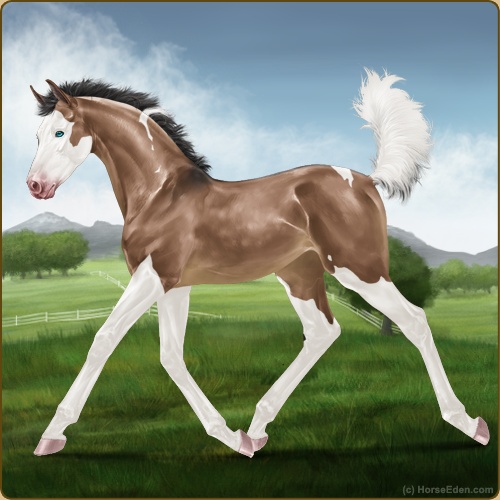 Color: Mahogany Bay Dun Tobiano Splash White