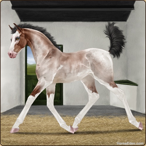 Color: Mahogany Bay Roan Splash White Sabino