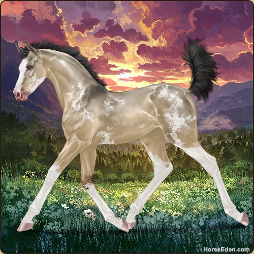 No GP, no A+... but dappled dunalino with a new splash coat that has a white tail. :D