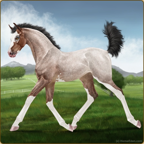 Color: Mahogany Bay Roan Sabino Varnish Frost Appaloosa