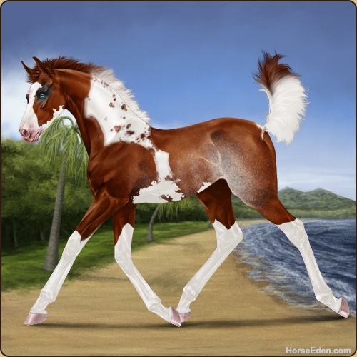 Color: Chestnut Tobiano Splash White Sabino Rabicano